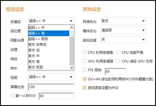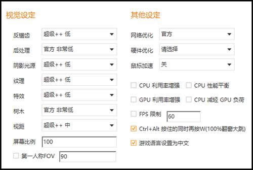 (上图为游戏加加团队里某台电脑自动优化后的推荐设置,不同电脑,系统自动优化后的推荐配置各不相同)另外值得注意的是,超级助手各种设置参数,除了官方提供的五种外,每个设置里面还提供了三个选项,无论使用哪一种超级助手的选项,在游戏中都显示为非常低,属于正常现象。