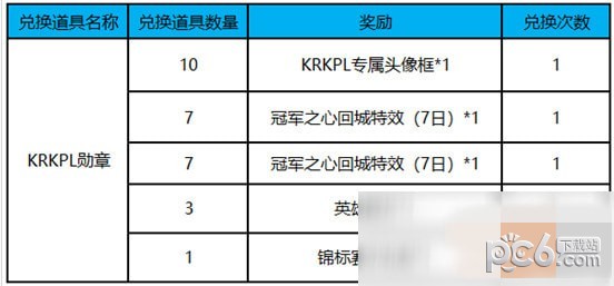 活动期间,收集KRKPL勋章可免费兑换KRKPL专属头像框;