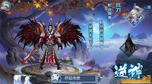 斩尽世间邪魔道,光武昊天照九州是对狂刀最大的描述,狂刀则具有挺拔和强壮的身材,手持的大刀让这个职业尽显威武霸气。