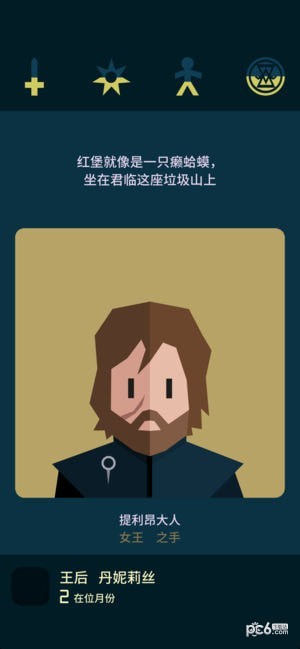 reigns got游戏里的铁王座不是那么好坐的,七大王国相互牵制,各大家族之间的爱恨情仇错综复杂,巨龙、森林之子、异鬼更是拥有超越常人的神秘力量。想要在铁王座上待得长久,就要平衡各方势力。那么reigns got四个图标什么意思?下面一起来看看吧。