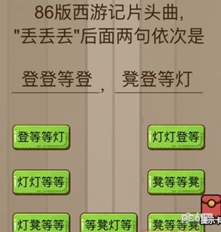 [摘要]微信脑力大乱斗第93关是86版西游记片头曲。难度比较简单,那么微信脑力大乱斗第93关怎么过呢?下面将给大家带微信脑力大乱斗第93关答案。 第93关 登登等登,凳登等灯。脑力大乱斗攻略相关资料第1...