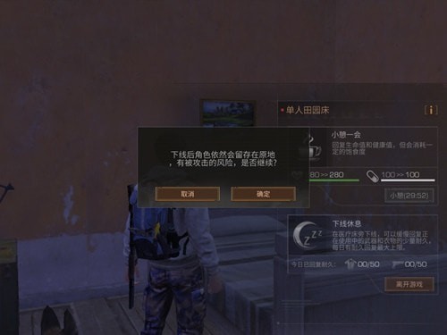 床边下线的话我们的角色会留在原地,如果有人来偷袭的话是会被攻击的,但是可以恢复衣服和武器的耐久度哦。