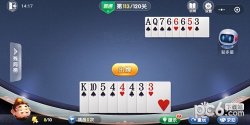 微信欢乐斗地主残局普通113关怎么过?微信欢乐斗地主残局闯关普通第113关的手牌为K10544433,下面就让我们一起来看下,斗地主残局普通模式113关攻略。