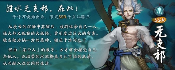 无支祁是踏青之旅活动卡池中的限定SSR,玩家需要通过踏青之旅卡池抽卡获得。