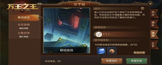在万王之王3D地下城副本中又迎来了一个全新的副本——移动迷宫。这是一个全新的玩法,相信也会给玩家带来不一样的游戏体验。今天为大家带来的便是移动迷宫副本的玩法详解。
