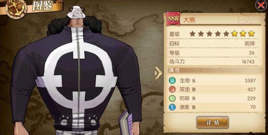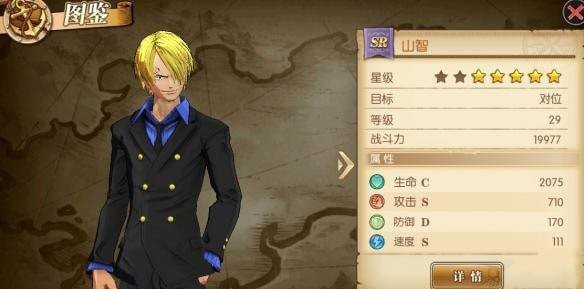 山治是一名SR角色但是却有着超越SSR角色的伤害能力,一上来就是S的攻击等级,而且速度非常快,有用先手能力,后期点了封印技能的效果更是非常强力。山治的所有技能全部为单体技能,秒杀单体能力非常强,是新手前期非常实用的角色,得长推荐连一个并且超越到满星。