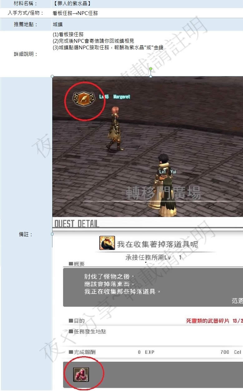 [摘要]近期已经越来越多玩家再拼传说武器,至于材料也有很多方法入手,所以趁著上班时间整理给大家参考,当然内容会以"较困难"掉落的材料为主。刷材料的方式很多种,但会以我自己及朋友们刷的方式...
