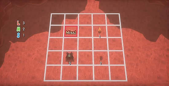 3、攻击后,如果敌人位于攻击目标格周围1圈范围内,则显示怪物图标;如果显示Miss,则攻击目标格周围1圈范围内无敌人。
