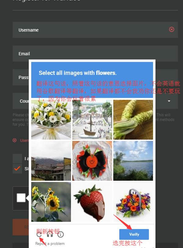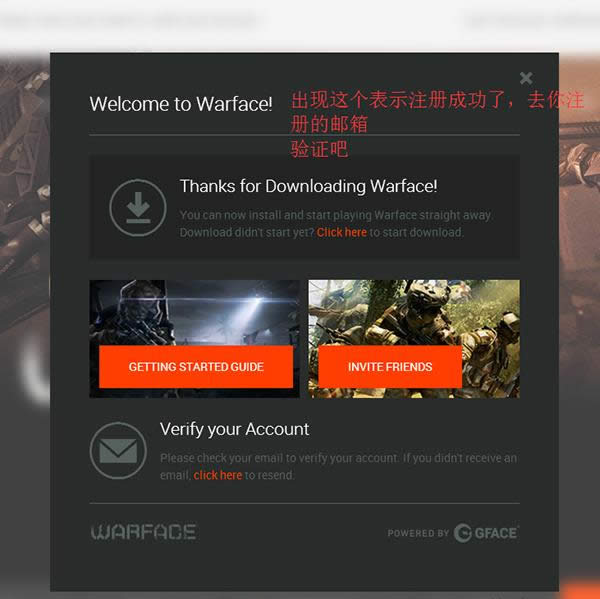 上图的验证码按照要求选择以后即可,英文部分自行翻译了,一般都是很简单的常识;验证后点击注册即可,如下图: