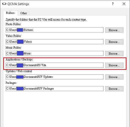 3. 对右下角的Qcma按右键「Settings」->「Other」,参考图片设定并按下OK(为防止PSV误升,请玩友务必将PSV开启「飞航模式」)