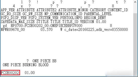 「param.sfo」用记事本打开,往下拉到最后,版号前方有个代码就是游戏编号)
