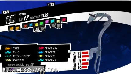 要求【HP全恢复复活技能】的バグス。第九级需要完成一个早期支线获得该Persona的解锁道具才可以合成(任务名称:歪んだ瞳のネトスト女子)。
