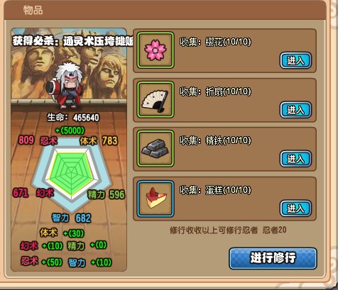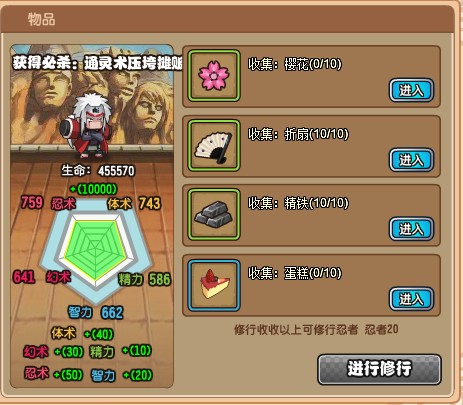 关键词: 火影传说自来也修行材料介绍
