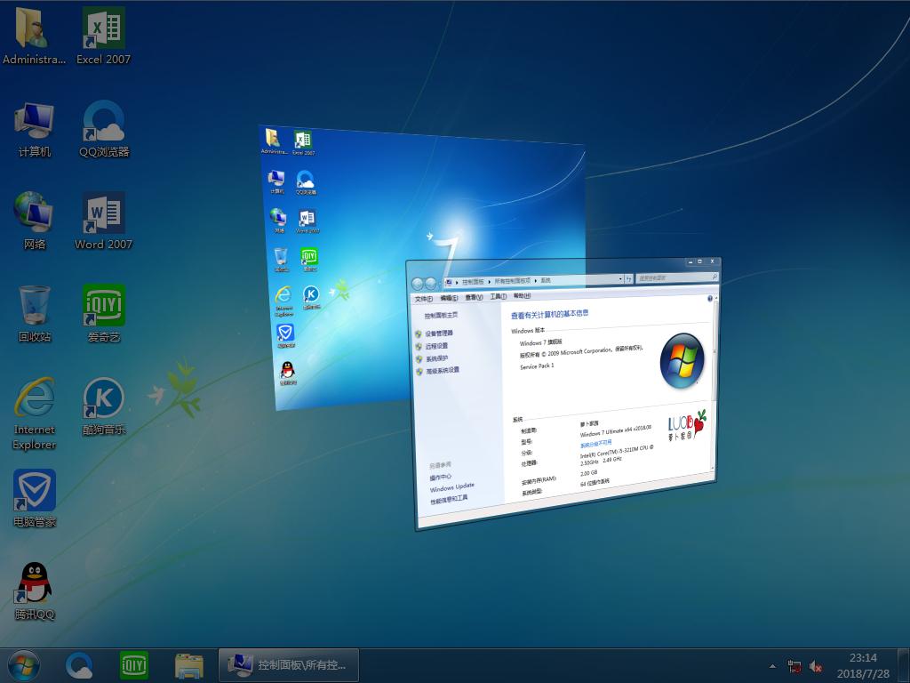 采用Windows 7 Sp1 64位旗舰版作为源盘,采用最新封装技术制作而成!