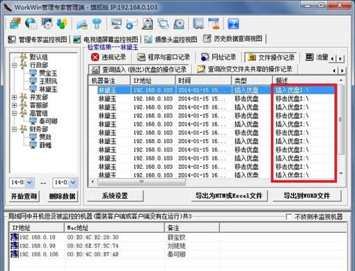 监控并记录插拔U盘; 监控文件拷贝删除;
