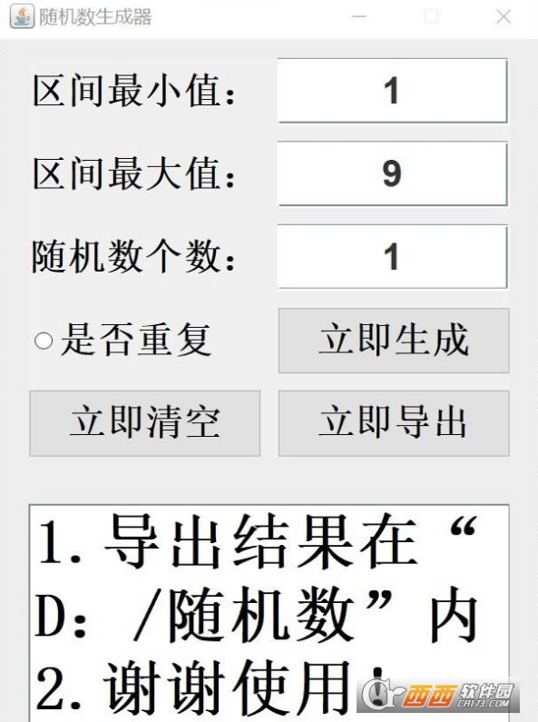 随机数生成器安装版是一款作者自己写的在电脑上使用的随机数一键生成软件,软件所产生的后面的那个数与前面的那个数毫无关系。它常应用于统计学的不同技术中。比如在从统计总体中抽取有代表性的样本的时候,或者在将实验动物分配到不同的试验组的过程中,或者在进行蒙特卡罗模拟法计算的时候等等。