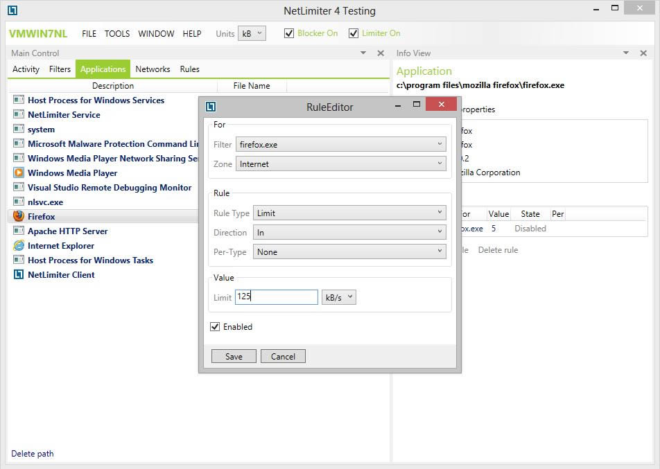 NetLimiter(带宽流量控制软件)是一款运行在Windows 98/98SE/me/2000/xp/2003上的网络流量控制软件。通过NetLimiter,您可以直接来控制每个程序对Internet的访问以及流量分配情况。例如,您可以用NetLimiter来为单个程序甚至是单个网络连接限定其上载和下载速度。通过非常简单的设置,NetLimiter就可以让你随心所欲地在各个程序之间分配网络带宽。