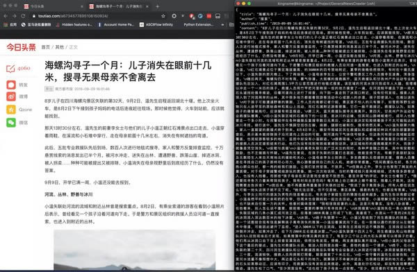 这篇论文中描述的算法看起来简洁清晰,并且符合逻辑。但由于论文中只讲了算法原理,并没有具体的语言实现,所以我使用 Python 根据论文实现了这个抽取器。并分别使用今日头条、网易新闻、游民星空、观察者网、凤凰网、腾讯新闻、ReadHub、新浪新闻做了测试,发现提取效果非常出色,几乎能够达到100%的准确率。