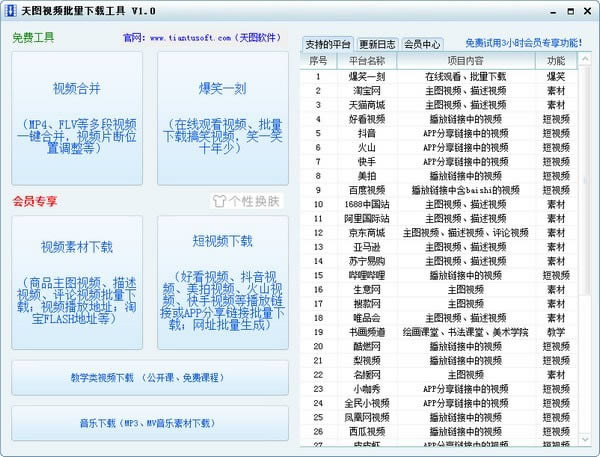 天图视频批量下载工具是一款专业的视频下载工具,可自动去水印、批量修改MD5、一键获取平台热门视频,是电商、自媒体、吸粉的实用工具,支持几十个平台的视频下载,节省去水印修改MD5下载时间,充分提高工作使用效率。