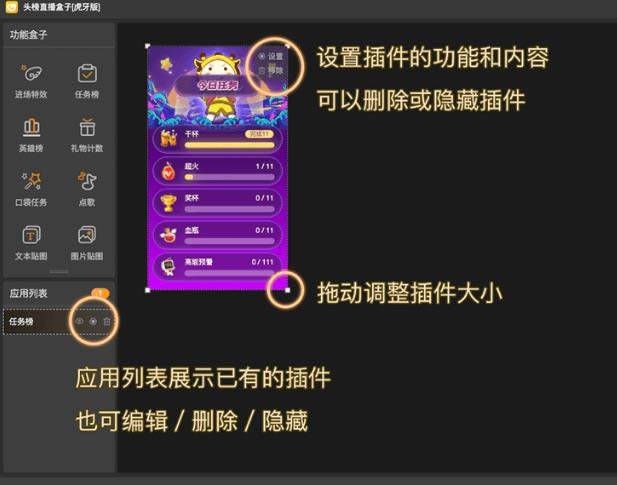 头榜直播盒子是款支持虎牙、斗鱼两大直播平台的直播辅助工具,支持弹幕助手、互动工具、直播辅助、智能场控等功能,实时监控直播间数据,通过分析来提高直播内容质量,获得更多关注。头榜是指头部主播排行榜,专注于直播领域和主播的大数据分析,致力于打造基于直播行业生态的数据服务与辅助工具平台。依托头榜领先的大数据处理与挖掘能力,为主播、经纪公司、广告主提供标准化、个性化的数据服务与直播互动产品。帮助主播提升直播内容,提高直播效率,活跃直播氛围,增强个人 IP,最终实现更高的直播价值。