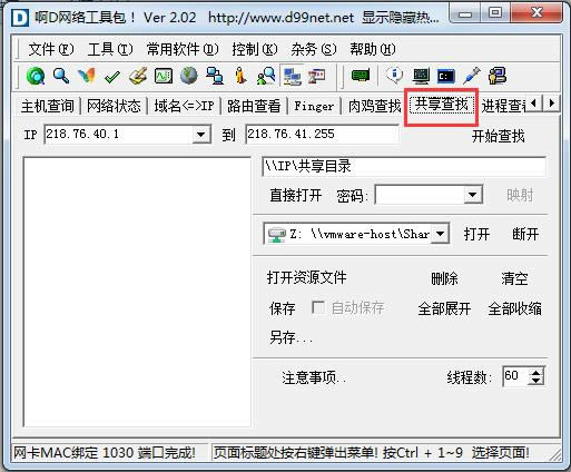 7、共享查找界面包括了各种IP的使用、共享目录的查看,打开资源文件、注意事项等;