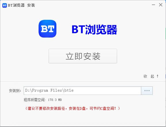 1.到本站下载安装BT浏览器,打开安装程序,点击自定义安装