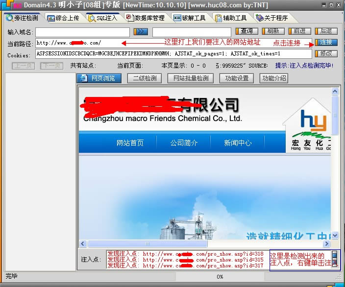 一、明小子注入工具怎么使用?具体操作方法先打开我们的明小子,在当前路径这里输入你要注入的网站地址,然后连接如下图。如果此网站有注入点的话,下面注入点框内会出现红色的注入点地址。