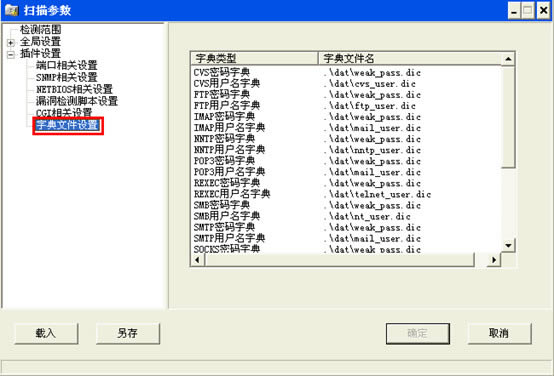 字典文件设置:设置扫描弱口令时用到的字典,可以编辑字典以自定义弱口令