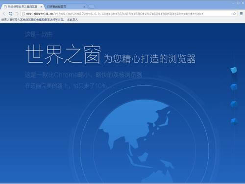 世界之窗浏览器(The world)是由凤凰工作室出品的多标签浏览器。世界之窗浏览器完全免费,没有任何功能限制,不捆绑任何第三方软件,可运行于 Windows XP/Windows 7 (32位/64位)系统。世界之窗浏览器是一款以IE为内核的浏览器,其免费小巧、快速、安全、功能强大获得众多用户的喜爱。继IE浏览器7.0版之后,是世界上第二款采用多线程窗口框架的浏览器,世界之窗区别于其它采用单线程的多窗口浏览器,多线程框架可以大幅减少由于某个网页假死导致的整个浏览器假死情况,并且可以在一定程度上提高网页打开速度。