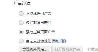 2、找到广告过滤,选中强力拦截页面广告,