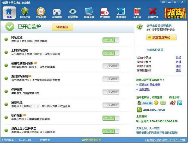 游戏限制:可以控制玩游戏的时间,能智能识别出大部分全屏游戏。