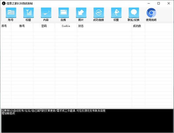信息之家B2B自动发帖是一个非常实用便捷的自动发帖小工具,主要面向在B2B论坛网站运营内容的小伙伴们使用,可以帮助大家更加轻松高效的完成内容运行工作,支持自定义账号、标题、内容、段落、图片等设置,使用方法也十分简单。
