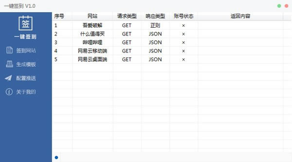 全自动一键签到是一款针对论坛/网站等自动签到的工具,对比市面上其他签到软件,可以自由创建模板,创建属于自己签到,可以自由生成签到,打开软件,分别为四个分组,分别对应的不同的选项和功能!