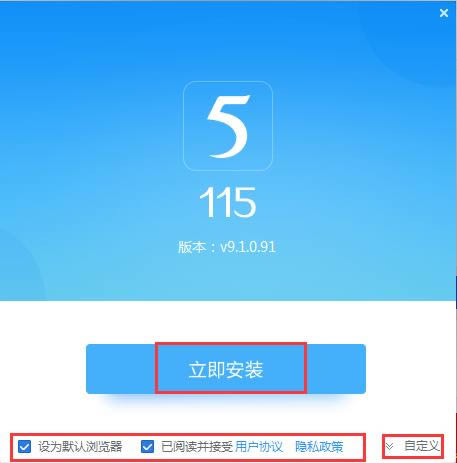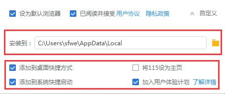 1.点击即安装或选择自定义,注意软件主动将其设为默认浏览器,不需要的请取消勾选