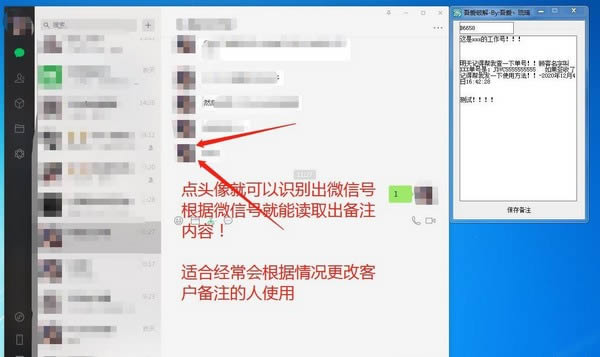 微信备注小工具是网友开发的微信辅助软件,网销客服人员必备,点头像就可以识别出微信号,根据微信号就能读取出备注内容,适合经常会根据情况更改客户备注的人使用!