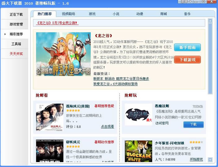[摘要]盛大下载器是一个为1.2亿盛大用户量身打造,专注于提供游戏下载和自动更新游戏服务,盛大下载器是您游戏生活安全可靠,贴心放心的好帮手。 采用业内最先进的P2P下载技术,遍及全国的官方专用服务器,和数亿...