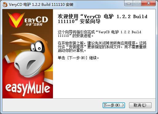 1.到本站下载安装VeryCD,打开安装程序,点击下一步继续安装