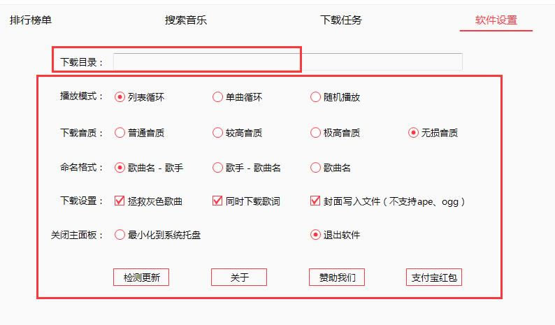 1.打开软件,点击软件设置,在这里你可以设置各种参数,输入音乐下载目录等