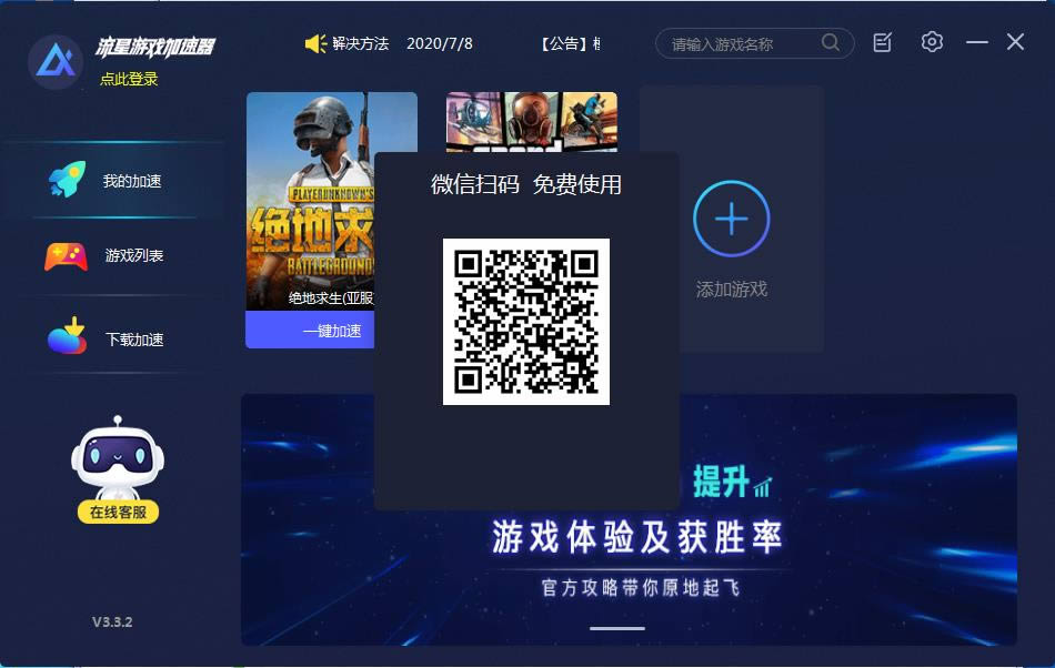 流星游戏加速器是款免费纯净的游戏加速器,配备顶级游戏专线,解决网络游戏延时高所引起的卡机、掉线以及登录难等问题,最大程度地确保网络稳定,支持绝地求生、LOL、GTA5等国内外千款游戏免费加速。