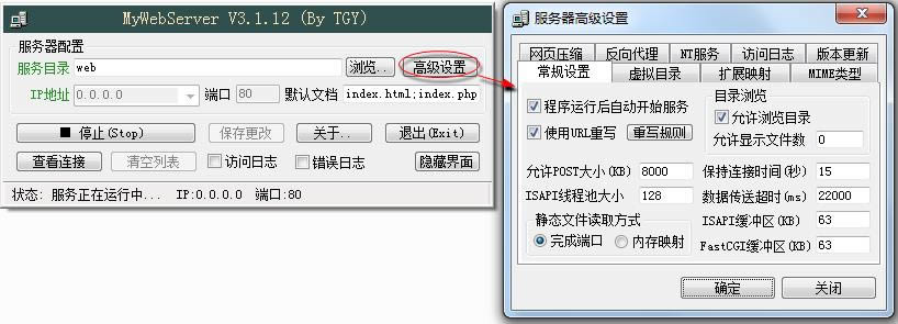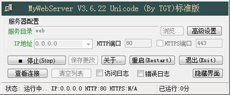 [摘要]MyWebServer是一个高性能、易用、小巧、绿色的轻量级WEB服务器软件,支持fastcgi,isapi扩展,断点续传、大文件下载、正则表达式url重写、虚拟目录等常用功能,是你快速建站及个人H...
