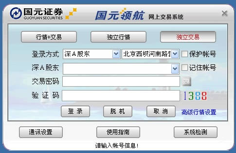 国元证券领航网上证券交易系统是一款强大的网上证券交易系统软件,可单独关注行情、分析股票。国元证券用户还可登录进行网上股票交易、融资融券等等。相比于其他的额证券交易软件,国元证券领航版,分析能力更加强大,工具使用更加方便,可提供多帐户管理、切换操作简便、多种批量功能、持仓信息浏览、快速撤单、联线帮助、自动升级、模糊查询、断线重连、智能路由等。