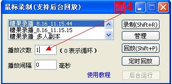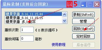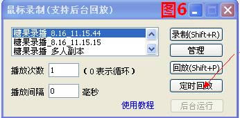 鼠标录播要进行回放时,先设定好播放次数以及播放间隔如图4所示。然后选定需要的脚本点击“回放”就可以自动进行操作了如图5所示。如果你想要回放的操作是有固定的时间点,可以点击“定时回放”如图6所示,会弹出定时回放对话框如图7。