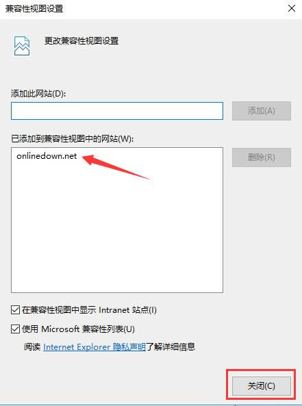 3、这样该网页就被加入到兼容性视图列表中了,之后再浏览这个网页时就会自动使用兼容性视图模式。