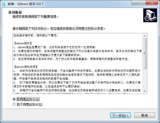 1.到本站下载安装Qdown,打开安装程序,勾选同意此协议,点击下一步继续安装