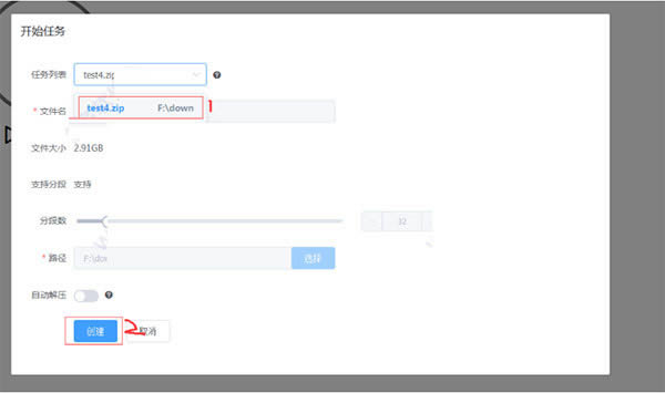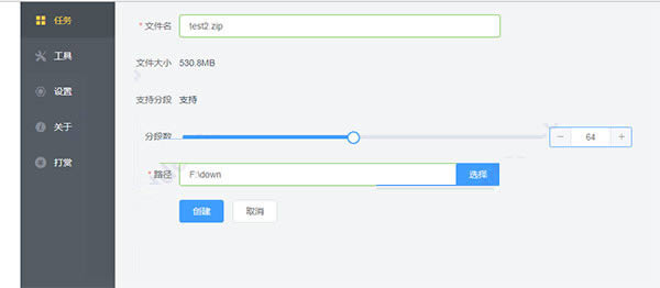 1、在安装成功之后,浏览器下载资源时会跳转到创建任务页面,然后选择保存的路径和分段数进行创建下载任务。