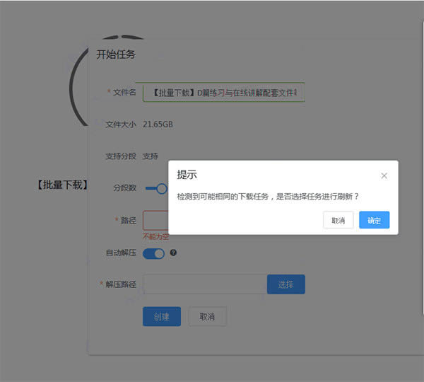 ①任务不要删除,再去下载此任务相同的资源,当弹出下载框时会有相应的提示。