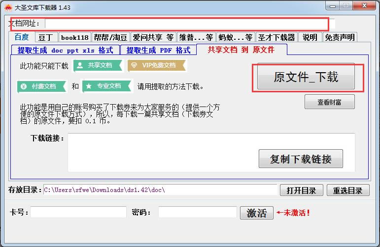 2、支持百度、豆丁等,操作简单,只需将文库的url地址复制到文档网址,再点击下载即可;