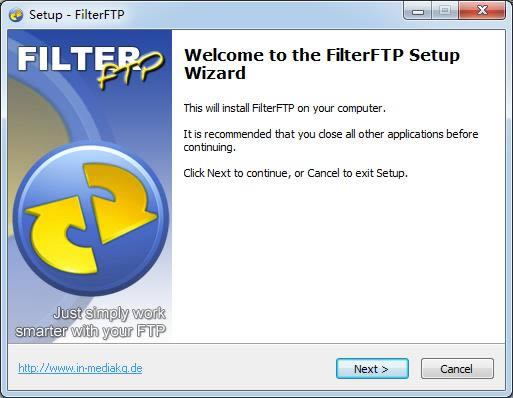 1.到本站下载安装FilterFTP,打开安装程序,点击next继续安装