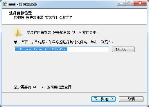 1.到本站下载安装好快加速器,打开安装程序,点击浏览选择安装位置,点击下一步继续安装