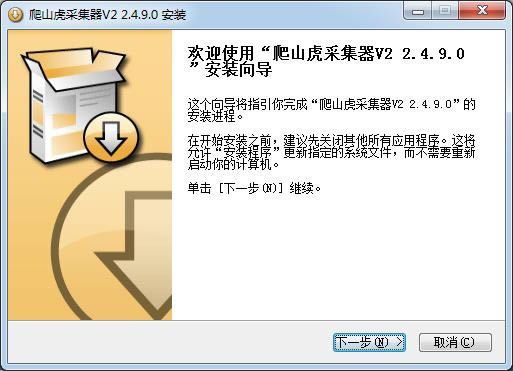 1.到本站下载安装爬山虎采集器,打开安装程序,点击下一步继续安装